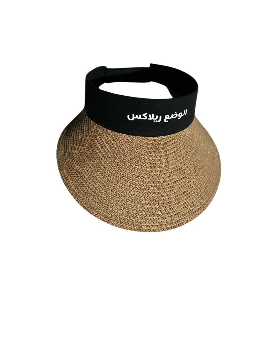Chic straw visor with Arabic "Relax Mode" slogan. Sun protection meets attitude in this beach-ready accessory that makes a statement while keeping you cool.