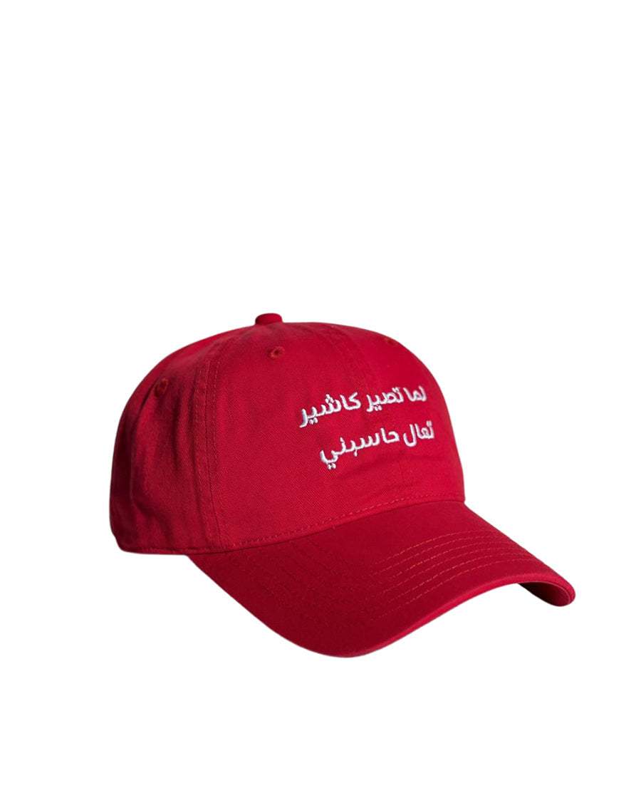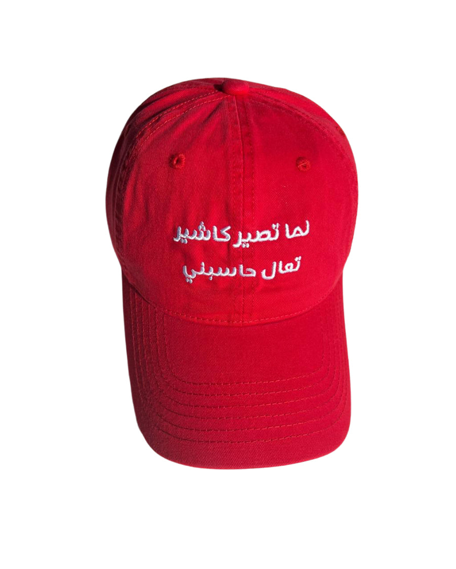 Bold red cap with Arabic embroidery that turns heads and starts conversations. Trendy cultural statement piece that adds humor to any outfit. Wear your attitude.